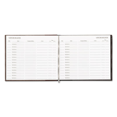 Keep track of visitors with this efficient register. Smart design features ledger paper with columns for Date, Name, Company/Address, Person to See, Arrive/Depart Times to manage a complete record of visitors comings and goings. Holds more than 1,500 entries; 14 entries per page. Convenient ribbon place marker.
